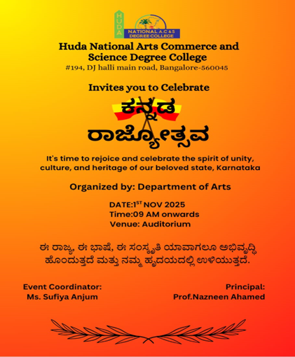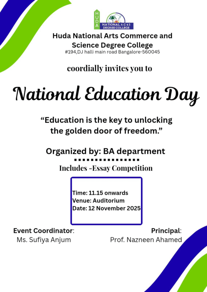 HUDA NATIONAL ARTS, COMMERCE AND SCIENCE DEGREE COLLEGE D.J HALLI, BANGALORE – 560045 ANTI – RAGGING CELL Topic: “Say No to Ragging – Creating a Safe Campus Environment” DETAILS OF THE PROGRAM INTRODUCTION Ragging is a serious issue that undermines the safety, dignity, and well-being of students, particularly newcomers. It can lead to long-term psychological trauma and disrupt the academic and personal development of victims. In response to the need for increased awareness and preventive measures, Huda National Arts, Commerce and Science Degree College organized an Anti-Ragging Awareness Program on 13th Aug 2025. The event aimed to sensitize students about the legal, psychological, and social consequences of ragging while promoting a culture of respect, inclusion, and safety on campus. OBJECTIVES As part of the institution’s ongoing efforts to promote a safe and inclusive campus environment, Poster Painting and Group Discussion events were organized on 13th Aug 2025 to spread awareness about the issue of ragging and encourage students to take a strong stand against it. 1. Poster Painting Competition The event commenced at 13th Aug 2025 with an enthusiastic participation of students from various departments. The theme of the poster painting was “Say No to Ragging”. Participants creatively expressed their thoughts using powerful imagery, slogans, and vibrant colors to highlight the negative impact of ragging and promote a culture of respect and harmony. A number of students took part in the competition. The posters were judged based on creativity, relevance to the theme, visual impact, and message clarity. The best entries were displayed on campus notice boards and common areas to further spread the message. 2. Group Discussion on Anti-Ragging Following the poster event, a group discussion session was held with selected students from different departments. The topic of the discussion was “Ragging promotes bonding among students myth or reality?” Participants shared their views, personal experiences, and suggestions on how to effectively eliminate ragging and foster a supportive campus environment. OUTCOME AND CONCLUSION The events were successful in creating awareness and encouraging dialogue around the issue of ragging. Students actively participated and showed a strong commitment to maintaining a ragging-free campus. The organizing committee thanked all participants and reaffirmed its dedication to ensuring a safe, respectful, and inclusive educational environment for all. Photo Gallery Poster painting competition Group Discussion Posters EVENT COORDINATOR: pRINCIPAL:Ms. Nida Tahereem Prof. Nazneen Ahamed