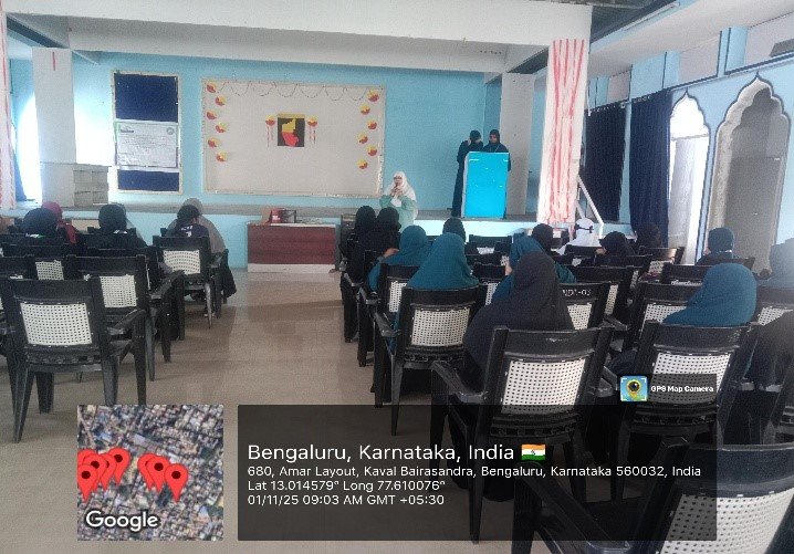 The programme began with Qirath by Fareeha, 3rd year BA. This created a serene opening for the gathering. It was followed by a welcome speech delivered by Ayesha Firdose, who greeted the audience and introduced the purpose of the celebration.
