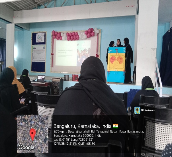 The institution observed National Education Day on 12 November 2025 with a structured programme aimed at highlighting the value of education. The event opened with an invocation in the form of Qirath by Fareeha of 3rd Year BA. This recitation set a reflective tone for the gathering.