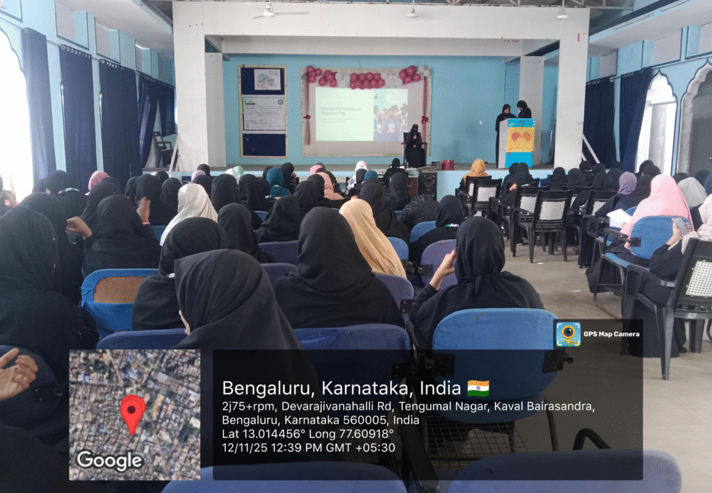 Anchoring for the Programme was carried out by Shaista and Afreen Taj of 3rd Year BA. Their coordinated presentation ensured smooth transitions between the segments and maintained the attention of the audience. A welcome speech was delivered by Afreen Begum of 3rd Year BA. Her address greeted the participants and briefly stated the purpose of the celebration, emphasising the role of education as a foundation for individual and social development.