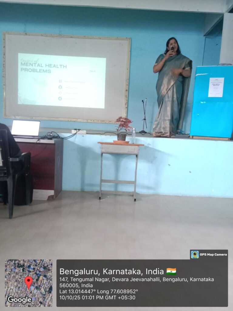 The Principal addressed the audience with an insightful speech, emphasizing the importance of emotional resilience, supportive environments, and open conversation about mental wellbeing. The invited guest, Ms. Sherline Deepak, a psychologist, delivered an engaging and informative talk that focused on practical strategies for maintaining mental balance, recognizing early signs of distress, and seeking help without hesitation.